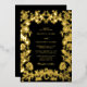 Eine schöne echte Goldfolie Hochzeitseinladung mit traditionellen handgearbeiteten Blumenbotanicals. Eine atemberaubende Schwarz-Gold-Hochzeit lädt Design mit minimalistisch klassischer Typografie ein. Traditionelle Schrift Typografie und Damast Kranz schaffen ein zeitloses elegantes Hochzeitsdesign mit Goldfolie.