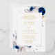 Real Gold Moderne Royal Blue Blumen Hochzeit Folieneinladung