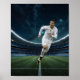 Wall Art & Décor: Ein surrealistisches Bild eines Fußballfeldes, das im ätherischen Licht gebadet wird. Das Real Madrid Wappen strahlt inmitten eines wirbelnden, sternförmigen Nachthimmels.