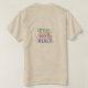 Der T - Shirt-Entwurf enthält den Text "Real oder Not Real?" in einem Farbverlauf von Regenbogenfarben vor einem dunklen, kosmischen Hintergrund. Der Text ist verzerrt und verleiht ihm eine trippige, psychedelische Atmosphäre. Planeten, Sterne und Kometen sind im gesamten Design verstreut und ergänzen das kosmische Thema.
