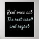 Bold and inspiring typography art that says, "Real ones act. The rest scroll and regret." Perfect for go-getters, dream chasers, and anyone who chooses action over distraction.