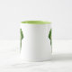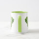 Dieser Mug zeigt eine Gruppe grüner Weintrauben mit auffälligem Realismus und gut gemahlenen Blättern mit natürlichen Farben. Die Abbildung zeigt die Frische und Reinheit der Frucht, die durch den Kontrast zum Handgriff und dem hellgrünen Inneren des Mugs sublimiert wird. Ein Bild, das fruchtig, hell und perfekt ausgewogen ist.