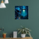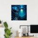 Eine atemberaubende epische ai Illustration einer Alien im Wald nach dem verlass seines UFO. Super detailliert mit einem glänzenden metallisch glänzenden Gefühl, um es so realistisch aussehen zu lassen. Alles in unheimlichen Blautönen und Schwarz.