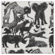 Realistische Safari African Animal Nature Fabric. Elefant, Giraffe, Krane, Tiger, Rhino, Löwe, Strauß usw.