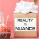 Die Welt ist komplex und die Probleme sind komplex, doch die Menschen - insbesondere in den sozialen Medien - wollte zu Leckereien wie Schwarz und Weiß. Die Realität ist, dass die Dinge nuanciert sind, also lasst uns aufhören, uns zu lehren und Nuance zurückzubringen.