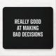 Really Good At Making Bad Decisions Funny Quote Mousepad