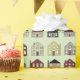 Creative Realtor Geschenkpackung oder echte Anwesen Agent Party Dekoration mit farbigen Reihen von künstlerischen Häusern.