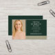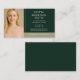Green and gold photo business card designed for realtors who want a refined, confident, and upscale brand presence. Features a photo-forward layout paired with rich green tones and elegant gold accents to convey trust, success, and premium service. Ideal for open houses, client meetings, luxury listings, networking, and referrals. Fully editable text and photo with a clean, print-ready layout.