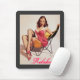 Ein Vintages Pinup-Mädchen-Bild mit Holzkohle grauem Hintergrund und Koordination fushcia, Skript-Text. Passen Sie dieses Retro-Mousepad an, mit welchem Namen Sie auch immer wollen!