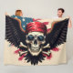 Mit dieser edlen, hochwertigen Decke in auffallendem Design: ein detaillierter Schädel mit Schal und Brille, geschmückt mit gekreuzten Knochen, Set gegen ein gewagtes Fragment der amerikanischen Fahne. Diese einzigartige Mischung aus rebellischem Stil und patriotischen Bildern macht es zum perfekten Statement für Ihre Wohngestaltung.