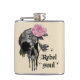 Rebel-Soul - Gothischer Schädel mit rosa Rose Flachmann