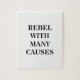 Ein Rebell, der viele Ursachen hat. Originelles Textdesign.