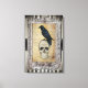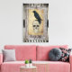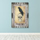 Ein dunkelgotisches Halloween-Bild mit einem Schädel, einem schönen Raben, der in einem Vintagen Rahmen auf einem Hintergrund aus schwarz-weißen Streifen mit einer Grunge-Textur platziert ist. © WickwiederholtLovely