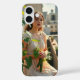 Eine modische junge Frau, die zart Krawatte Gurken unter dem Pastellhimmel, in weichen Stoffen gekleidet, die den ruhigen Rhythmus des Gartens widerspiegeln.