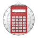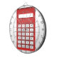 Vorderansicht des roten Taschenrechners abgeschieden auf weißem Hintergrund.