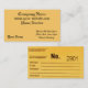 Gelbe Warenrechnungskarte ziehen an sich von Ihrer Visitenkarte zurück. Fertigen Sie mit Ihren Unternehmensinformationen besonders an.