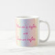 Diese hübsche Tasse präsentiert einen abstrakten Regenbogen-Hintergrund. Personalisieren oder entfernen Sie den Text, der lautet: Frauenrechte sind Menschenrechte. Der Text ist sowohl auf der rechten als auch auf der links Seite.