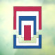 Rechtecke und rechteckige Formen in den patriotischen Farbtönen Rot, Weiß und Blau bilden die Grundlage dieses abstrakt-geometrischen Kunstwerks von Richard H. Fay.