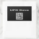 Rechteck-Aufkleber mit UFO-Dave-Logo und QR-Code