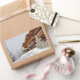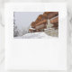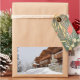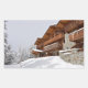 Rechteckiger Fotoaufkleber eines großen Chalets im Schnee im Skierholungsort Espace San Bernardo an der Grenze zwischen Italien und Frankreich im Winter.