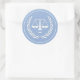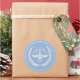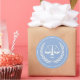 Geschenksticker, Gastgeschenk-Etiketten oder Umschlag Aufkleber mit Maßstäben für den Cartoon der Jurastufe auf hellblauem Hintergrund für Jurastudium, Jurist, Anwalt, Richter oder Paralegal. Fügen Sie Text zur Personalisierung hinzu.
