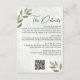 Diese wunderschöne Hochzeitszimmerkarte soll Ihnen zusätzlichen Platz für alle Informationen geben, die Ihre Gäste benötigen, wie z.B. Registrierung, Empfang, Reise, Unterkunft, etc., sowie einen individuellen QR-Code, der Ihre Gäste zu Ihrer Website führt, um weitere Informationen zu erhalten. Die Karte zeichnet sich durch ein rustikales Design aus, mit handgemalten Aquarellfarben-Blätter in den Farbtönen von Salbei. Der Titel ist in modernen Schriftzeichen geschrieben und liest "die Details".