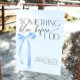 Rezeptionsschild mit staubblauem Bogen für ein thematisch gestaltetes Brautparty mit dem Motto "Shes band the knot": Dieses Dekor wurde mit zeitgenössischer Touch entworfen und verleiht Ihrem Fest eine elegante Touch. Es gibt auch passende Einladungen, Gehäusekarten und andere Zeichen in dieser Sammlung.