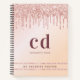 Stilvolle gürtelige und feminine Rose Gold und rot rosa Farbverlauf Hintergrund mit Rose Gold Imitate Glitzer Tropfen, Farbe Tropfen Look verziert. Personalisieren und fügen Sie Ihren Namen, Monogramm-Initialen und einen Titel. Der Titel in den Imitaten Glitzer Bänder. Rose goldfarbener Text. Ein Notebook mit leeren Seiten. Für Ihre Lieblingsgerichte.