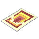 Rechtecke und rechteckige Formen in knisternden 70er-Jahren-Farben bilden die Grundlage dieses abstrakt-geometrischen Kunstwerks von Richard H. Fay.