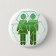 Transparentes recycelndes Symbol und zwei grüne Symbole für einen Mann und eine Frau am Erdtag Knöpfe, Magneten, Schlüsselanhänger und mehr Geschenke recycelnd.