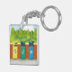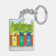 Eine Reihe farbenfroher recycelnd Mülleimer. Dieses Design wirkt auf diesem Schlüsselanhänger wirklich effektiv