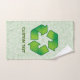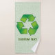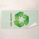 Recycelnd Symbol mit Holzschnitt-Schatten über Blätter nahtlos Hintergrund. Eigener Text.