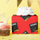Creative Abschluss Geschenkpackung und GradParty Dekoration mit schwarz-goldfarbenen Graduierdeckel auf rotem Hintergrund. Zum Personalisieren editieren Sie Text, um den Namen des Abschlusses und das Senior Class Jahr hinzuzufügen.