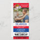 Feiern Sie Ihre Sport Paare Kinderdusche mit unserem allstar sport Baby Dusche Party Foto Einladung. Im Design finden Sie Fußball, Baseball, Basketball und Rugby/Football mit dem Foto Ihres Kindes auf einem roten und blauen Ticketstil eines Sportstadions. Die Farbe ist vollständig anpassbar, klicken Sie auf "Anpassen", um die Farbe des Themas an das Team Ihres Lieblingssports anzupassen. Dieses Design eignet sich perfekt für alle Starsport-Erstgeburtstage, sportliche Party zum 21. Geburtstag, alle Star-Sport-Paare-Duschen oder Sportspiele.