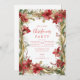 Ein kühnes und festliches Weihnachtsdesign gerahmt mit lebhaften, roten Amaryllis-Blüten, Wintergrün und goldenen Akzenten. Dieses elegante, saisonale Kunstwerk eignet sich hervorragend für einen angenehmen Aufenthalt in zeitlosem Stil. Ideal für diejenigen, die klassische Flora mit einem luxuriösen Weihnachtsgefühl Liebe.