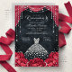 Red and Black Diamond Floral Quinceanera Einladung