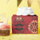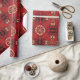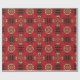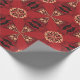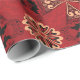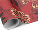 Red decorative wrapping paper featuring a symmetrical floral and triangular geometric pattern in black and gold tones, shown unrolled and flat.