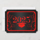 Eine Schwarz-Rot-Abschluss-Karte lädt Lieben ein, einen wunderbaren Absolvent zu ihrem besonderen Tag der Feier zu ehren. Die Informationen für die Einladung der Graduiertenpartei werden mit roter Schrift auf der Rückseite verfasst.