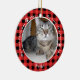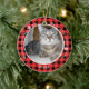 Rot und schwarz Gingham Cats "Mein erstes Weihnachten"-Ornament. Personalisieren Sie Ihren Text und das Foto und den Namen Ihres lieblichen Tieres.