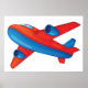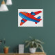 Ein rotes und blaues Flugzeug, das hoch am Himmel fliegt. Dieses Design sieht wirklich effektiv aus auf diesem Poster