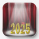 Goldtext 2025 im Rampenlicht auf Bühne mit rotem Vorhang für Graduiertenparty
