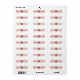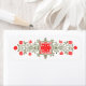 Ein Etikett mit antiken Vintagen Druckern, das mit einem dekorierten Schild und einem Blumendesign der Gänseblümchen und Blätter in Rot und Gold, restauriert aus einem antiken Manuskript, besticht