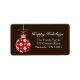 Eine hübsche Blume und glänzende Rot- und Goldverzierungen mit einem Band hängen an diesen hübschen Feiertagen und Weihnachten Rücksendeadressen-Aufklebern, die individuell und personalisiert mit Ihrer eigenen Botschaft und Adresse. Karo hier unsere passenden Urlaubsparty Einladungen: Artwork © Chrissy H. Studios, LLC. Alle Rechte vorbehalten.