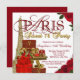 Paris Sweet 16 Geburtstagsfeier mit schönem Eiffelturm in Gold, eleganten Pariser Geschenkpaketen, goldenen Glitzer-High-Heel-Schuhen und extravagantem Rot-Paris-Drehbuch auf einem reichen rote Rose-Hintergrund. Diese wunderschöne Pariser 16 . Geburtstag-Geburtstagsveranstaltung lässt sich leicht an Ihre Veranstaltung anpassen, indem Sie einfach Ihre Daten in den Schriftart-Stil, Farbe und Wortlaut Ihrer Wahl einfügen. Dies ist ein gedrucktes Design ohne echte Diamanten, Juwelen, Glitzer, etc.