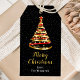 Dieses elegante und schicke Geschenketikett kann mit Ihrem Familiennamen personalisiert werden. Das Design ist mit einem roten und goldenen Weihnachtsbaum mit einem Sternenkopfer ausgestattet. Der Text kombiniert handgeschriebene Skripte mit modernen serifenlosen Schriftart für ein elegantes und raffiniertes Aussehen. Der fallende Schnee, Schneeflocken und Glitzern geben eine festliche und magische Touch. Das ist ideal für Geschenke und Gastgeschenke.