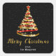 Red and Gold Ribbon Tree Frohe Weihnachten Quadratischer Aufkleber