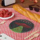 Dieses lustige UFO Paper Plate hat ein UFO, das das hässliche Xmas Pullover-Design in seinen Traktorstrahl sind zum Kotzen. Neben dem großen roten UFO bietet dieses Papier Plate traditionelle, hässliche Pullover-Details wie Schneeflocken, springende Hirsche und Poinsettias, alles in einem Kreuzstich-Look.