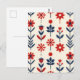 Red and Navy Folk Floral Pattern Postkarte
