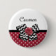 Mit diesem niedlichen Polodottern-Knopf in Rot und Weiß mit einem Zickzack, trendigen Schwarz-Weiß-Bogen und einer schicken roten Band-Rose. Personalisieren Sie dieses rot-schwarze Retro trifft modernes Design, indem Sie den Namen Ihres Teenagers. Flachdruckbild, KEIN tatsächliches Rosettenband und Bogen.