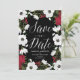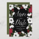 Individuell gestaltbare Ankündigung Datum freihalten mit weißen und roten Blume und modernen Kalligrafien. Dies ist Teil einer Hochzeitssuite "ANEMONE BLOOMS" - passende Artikel sind verfügbar.